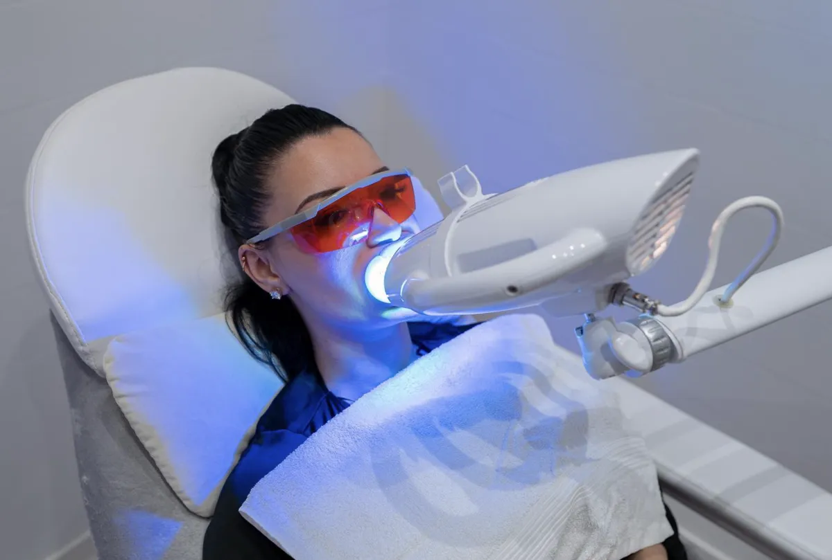 Vi bleker tänder med LED-Ljus, vilket är skonsamt för tänderna
